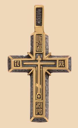 Это маленький ювелирный крестик, выполненный по образцам нательников семнадцатого столетия, и как все модели изделий того времени, несёт в себе характер победы и праздника. Имеет четырёхконечную форму, отличающуюся строгим характером геометрических пропорций. Отличительным свойством этого крестика являются объёмной формы балки самого изделия, оформленные под брус со скошенным краем, а в точке сечения образована трапеция. В середине модели имеются четыре луча, которые определяют его центральную часть, как символ света Бога – символ Иисуса Христа, что соответствует словам из Евангелия, в которых сам Господь говорит, что Он есть символ этого света.